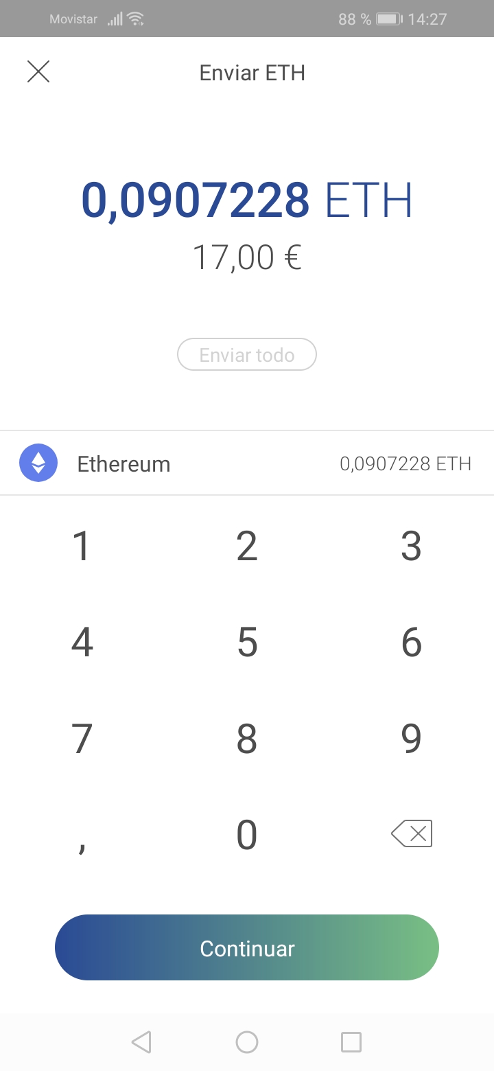A continuación pulsamos Dirección y se envía la cantidad que se quiera a la misma, poniendo un poco menos de lo que se tiene disponible por lo que cobra la blockchain en el envío