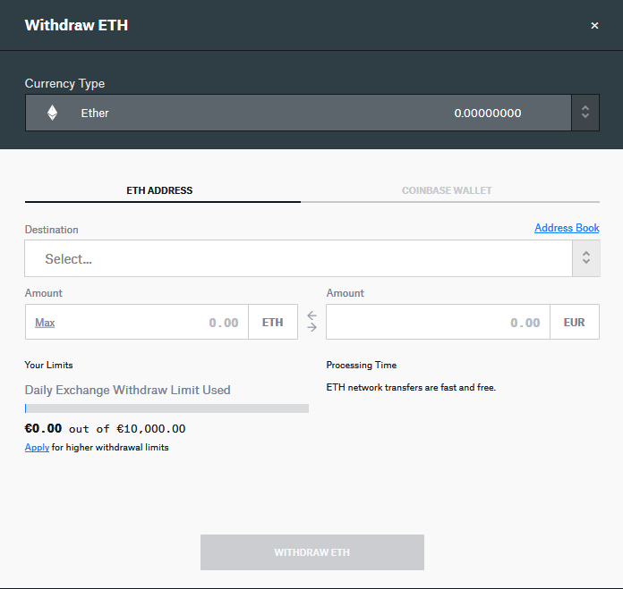 Una vez tenemos ya en nuestra cuenta fondos de ETH o BTC o BAT vamos a la parte izquierda y simplemente hacemos click en 'Withdraw' y se nos abrirá una pestaña para que escojamos qué tipo de fondos queremos enviar.